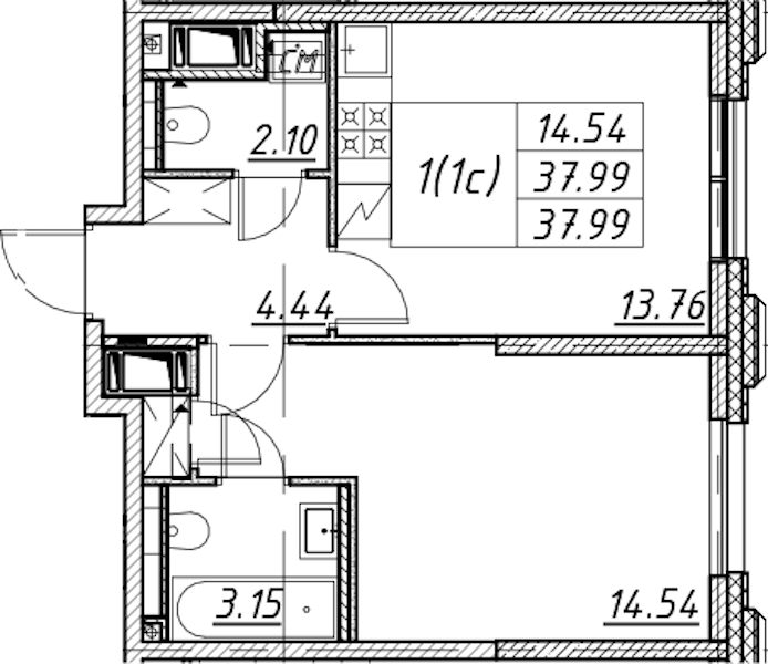 - Площадь37,99 м2