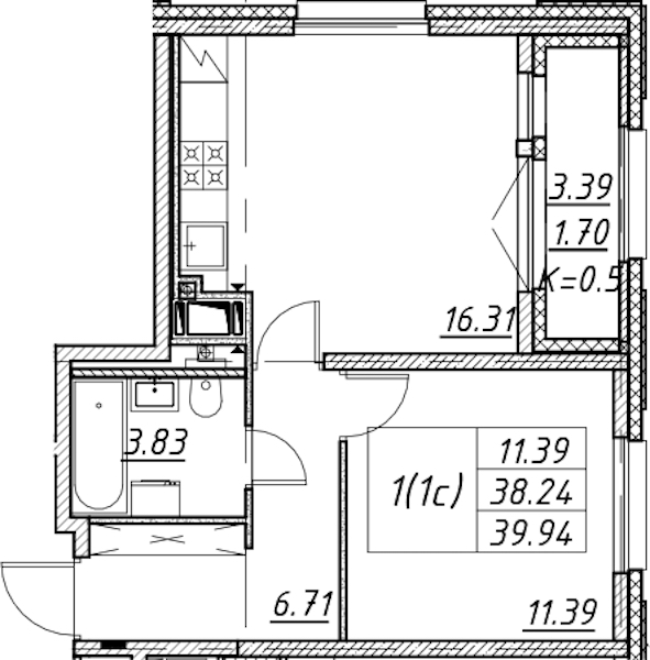 - Площадь39,94 м2