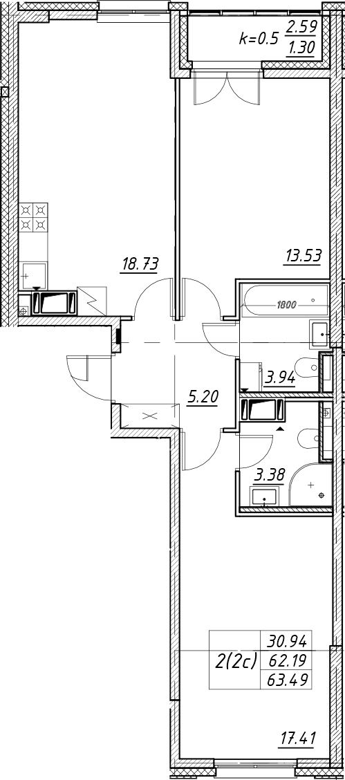 - Площадь63,49 м2