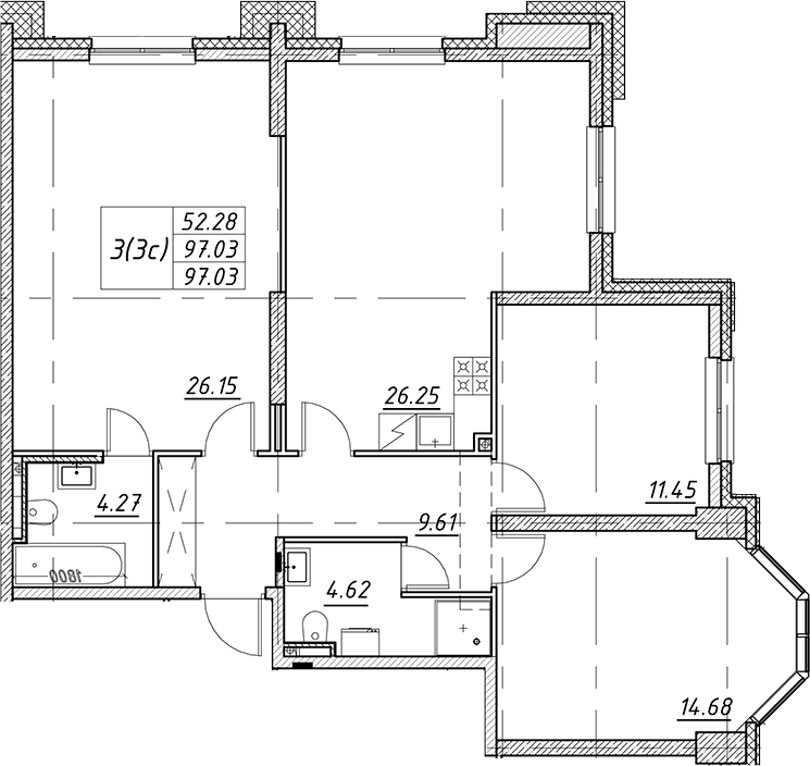 • Площадь97,03 м2