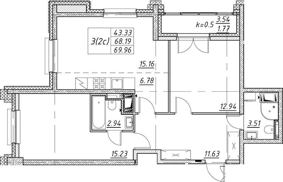 - Площадь69,96 м2
