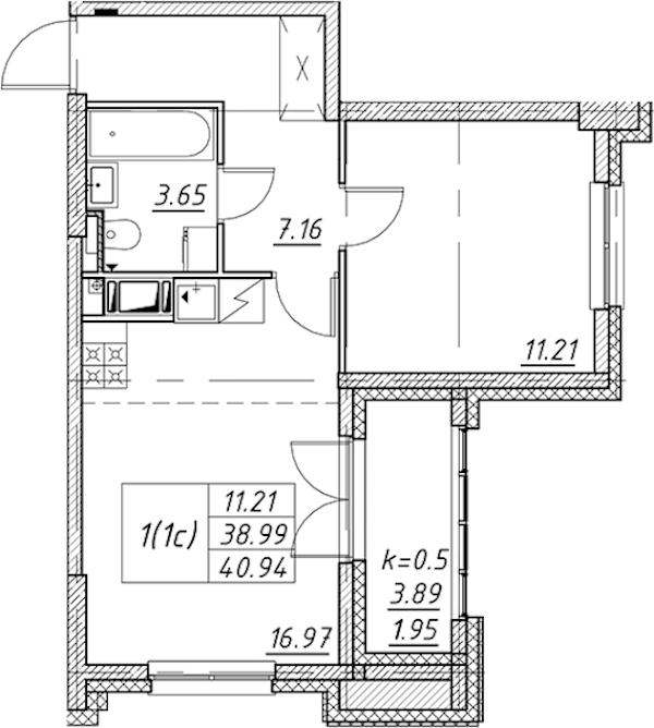 - Площадь40,94 м2