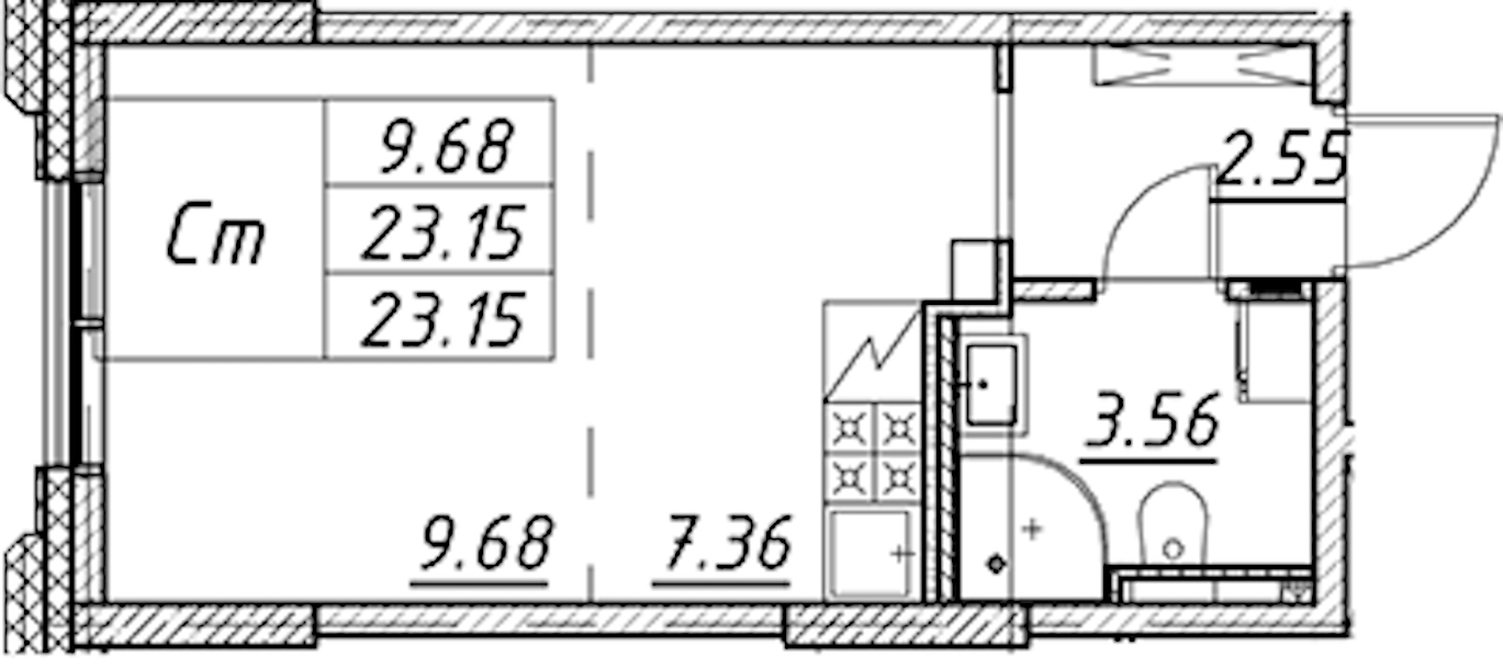 Квартира-студия на 2-ом этаже 23,15 кв.м