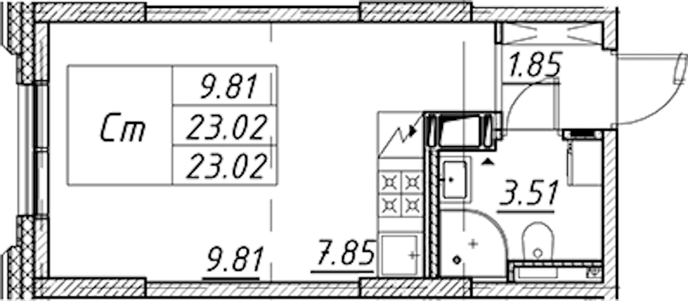 • Площадь23,02 м2