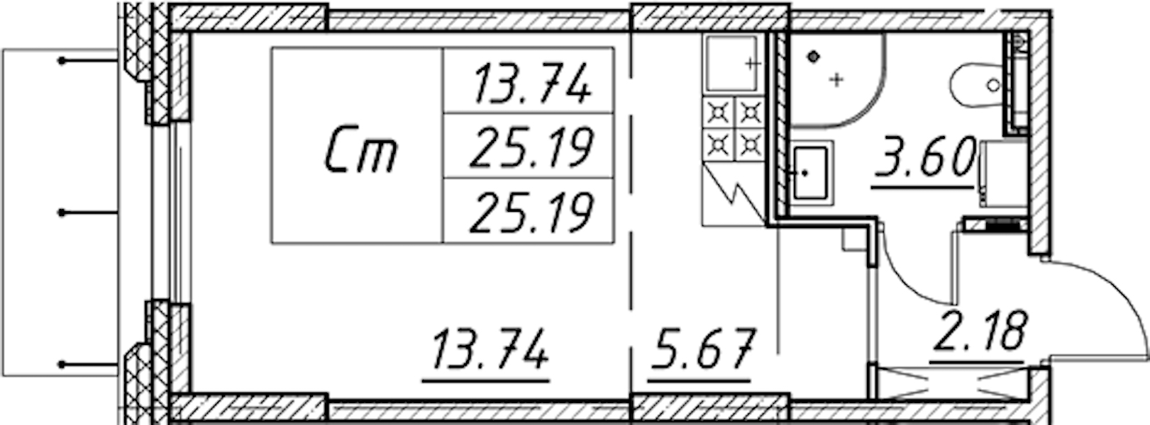 - Площадь25,19 м2