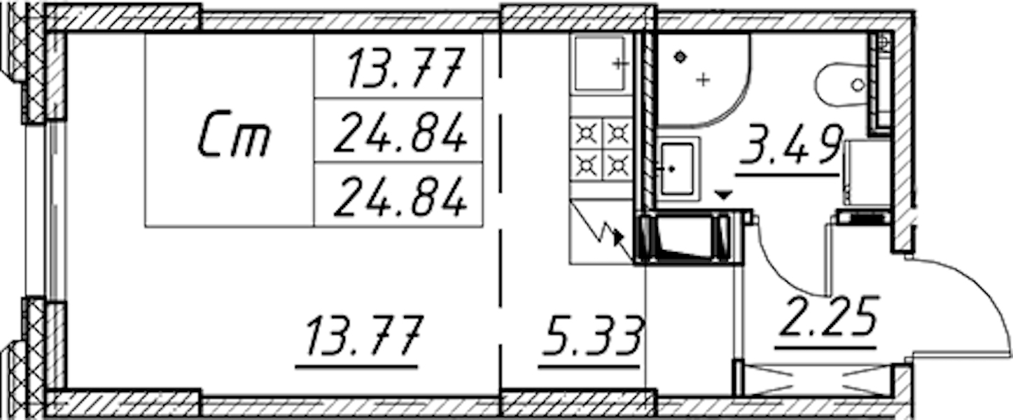 Квартира-студия на 3-ем этаже 24,84 кв.м