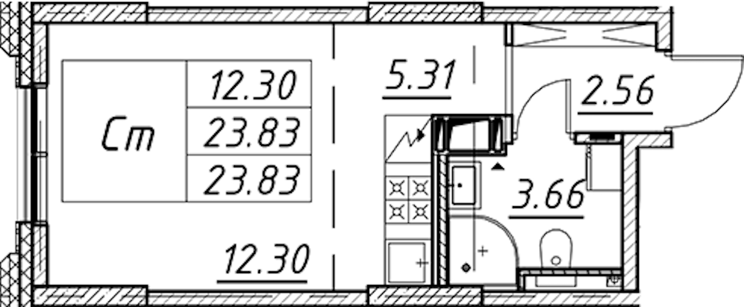 • Площадь23,83 м2