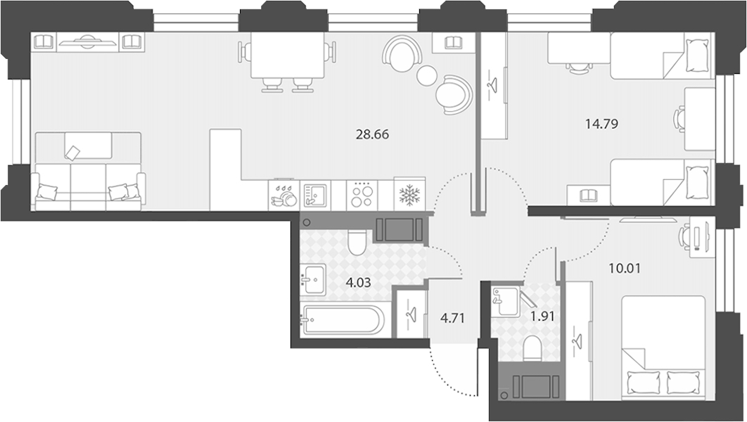 - Площадь кухни28,66 м2