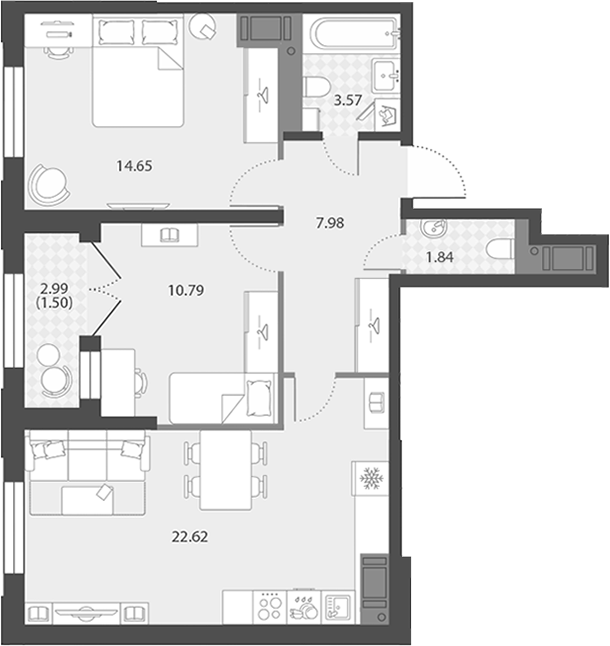 • Площадь кухни22,62 м2