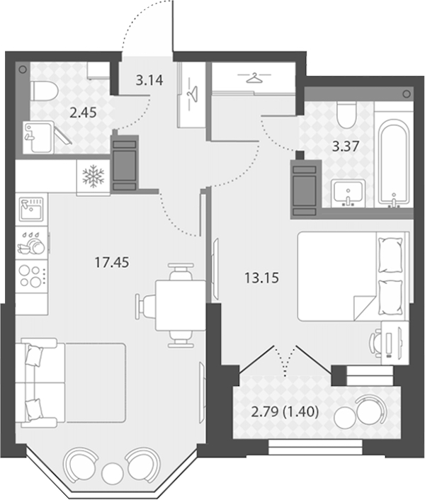 - Площадь40,96 м2