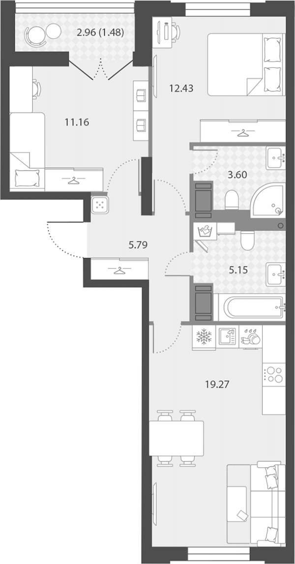 - Площадь кухни19,27 м2