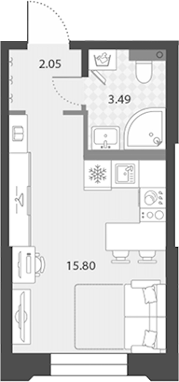 Квартира-студия на 2-ом этаже 21,34 кв.м