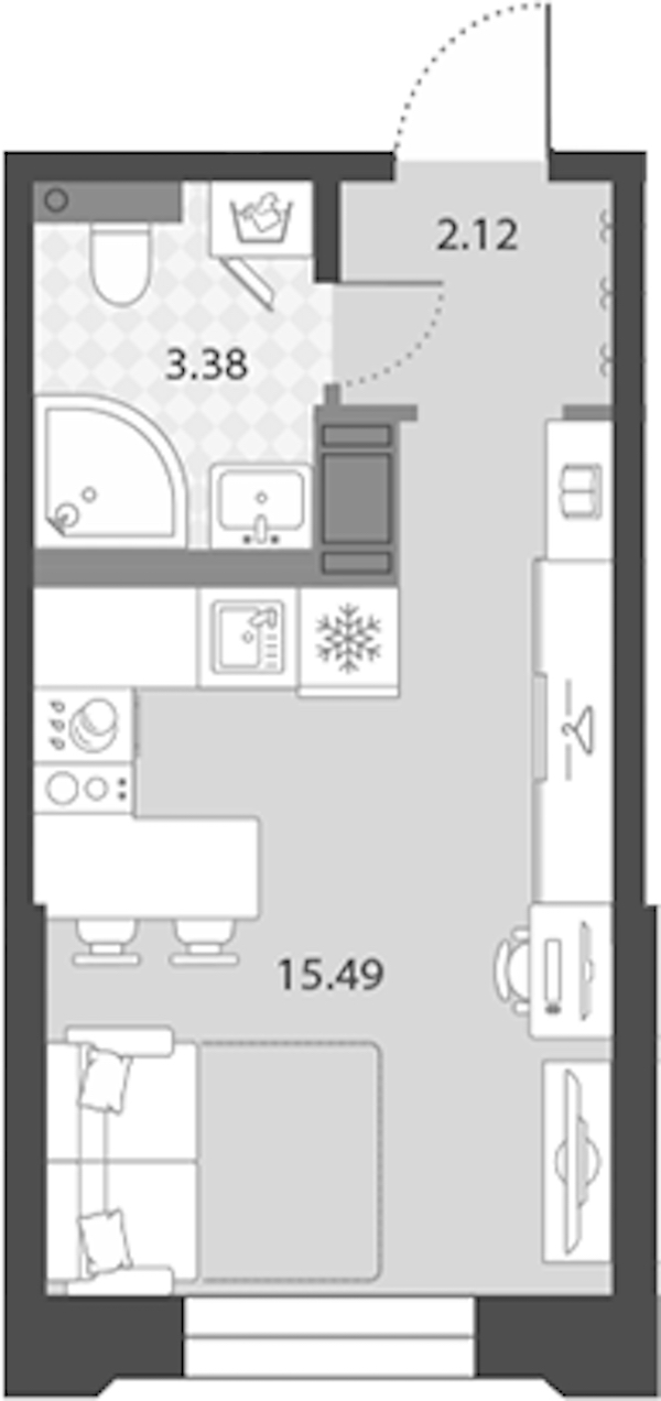 Квартира-студия на 5-ом этаже 20,99 кв.м