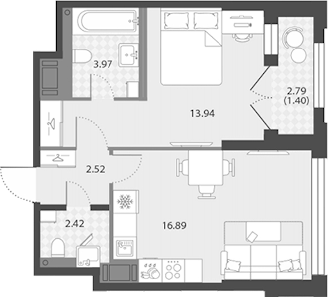 - Площадь41,14 м2
