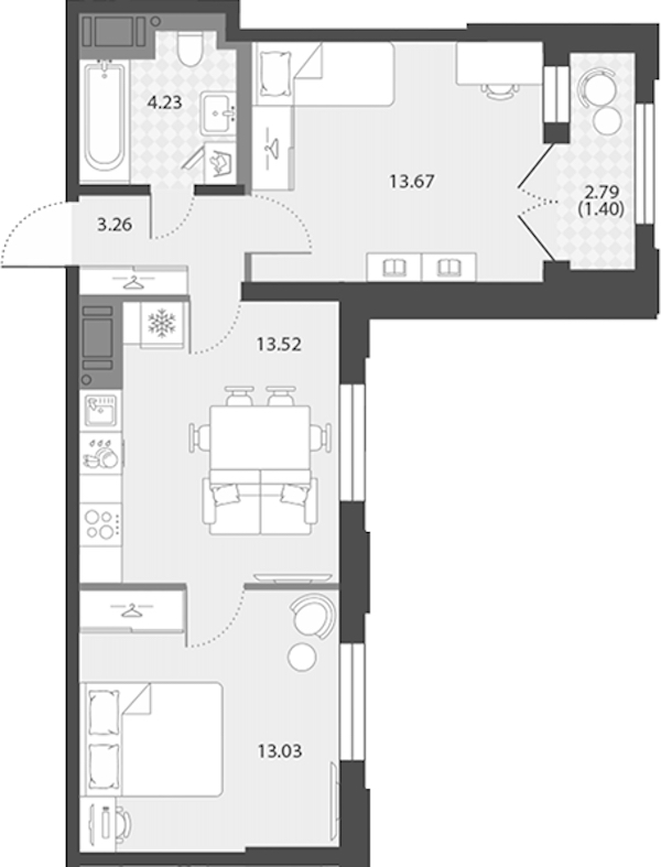 - Площадь кухни13,52 м2