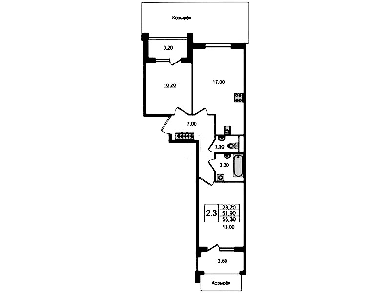 - Площадь51,9 м2
