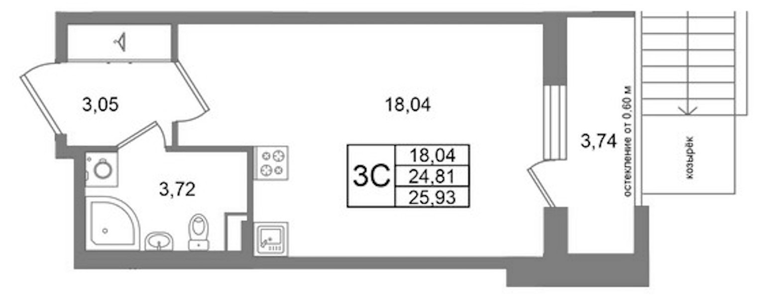Квартира-студия на 1-ом этаже 24,81 кв.м