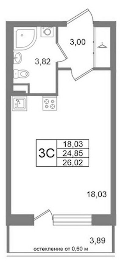 Квартира-студия на 1-ом этаже 24,85 кв.м