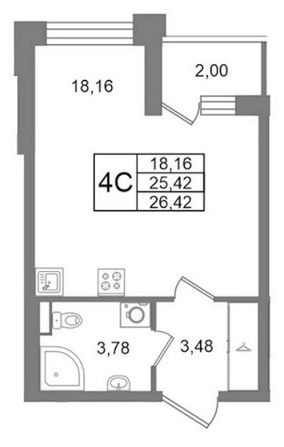 Квартира-студия на 1-ом этаже 25,42 кв.м
