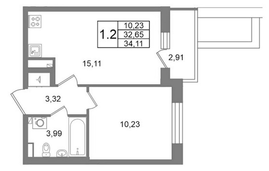 - Площадь32,65 м2