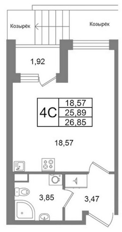 - Площадь25,89 м2