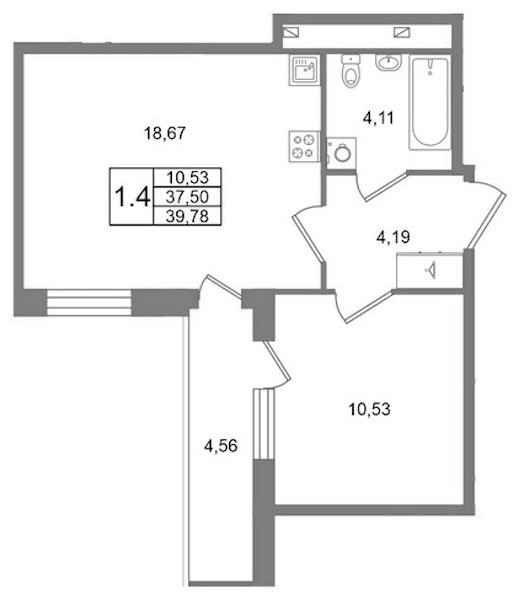 - Площадь кухни18,67 м2