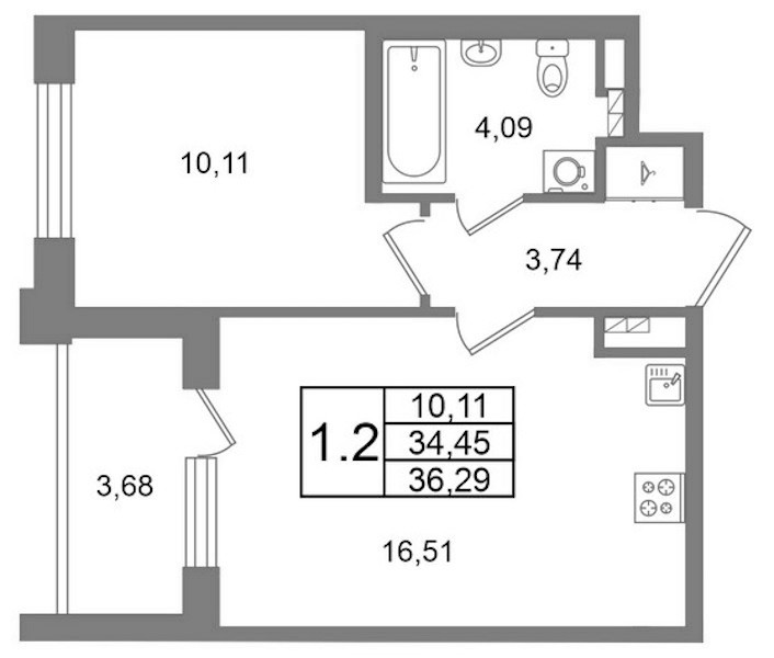 • Площадь34,45 м2