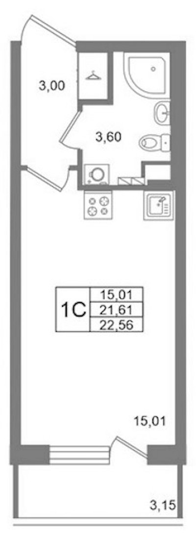 - Площадь21,61 м2