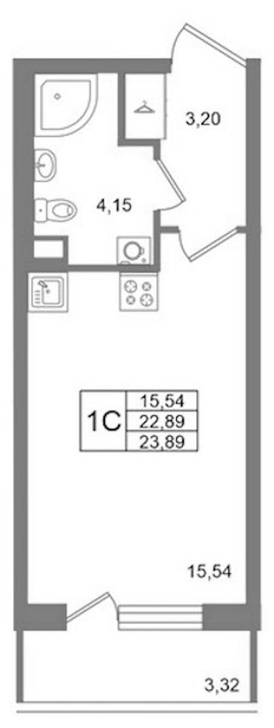 - Площадь22,89 м2