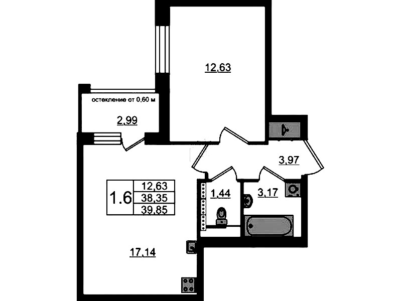 Однокомнатная квартира на 4-ом этаже 38,35 кв.м