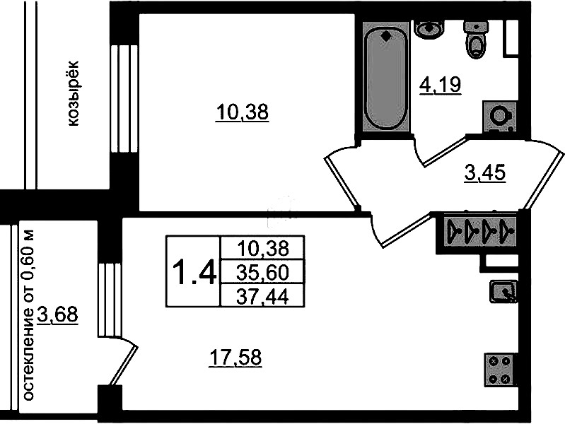 - Площадь35,6 м2