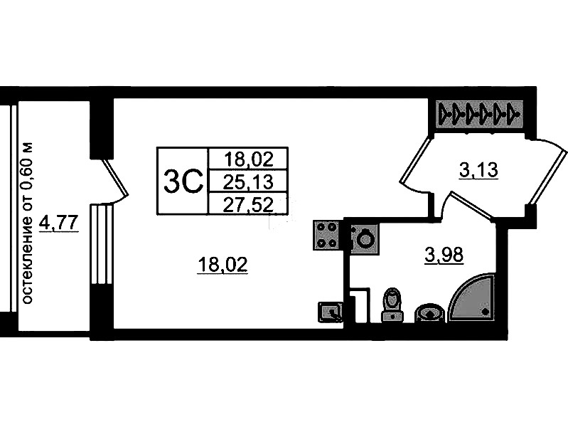 Квартира-студия на 1-ом этаже 25,13 кв.м