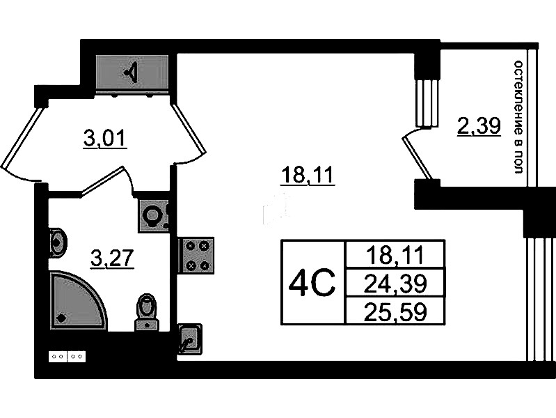 - Площадь24,39 м2