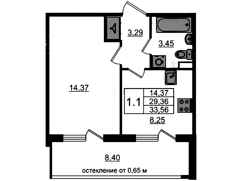 • Площадь кухни8,25 м2