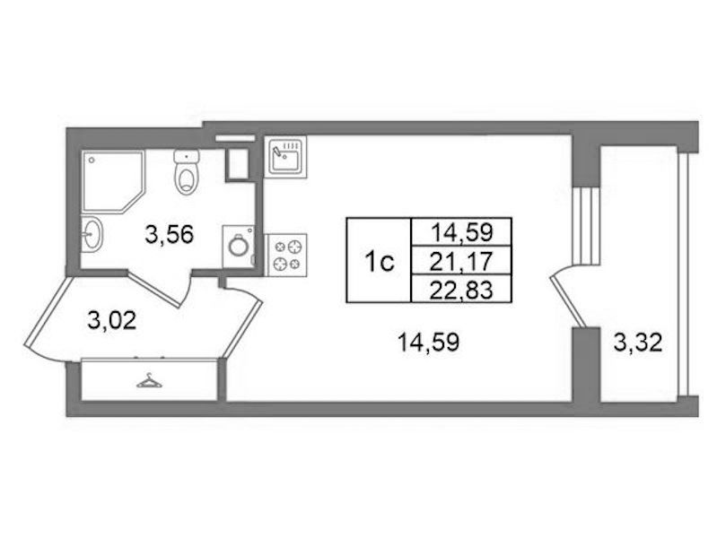 - Площадь21,17 м2