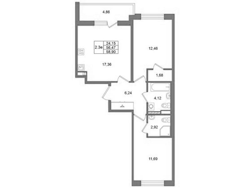 - Площадь кухни17,36 м2