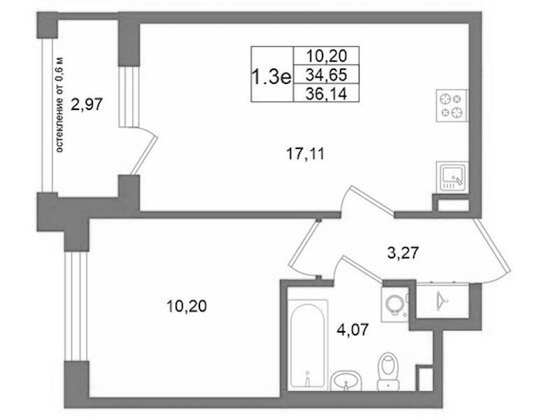 Однокомнатная квартира на 2-ом этаже 34,65 кв.м