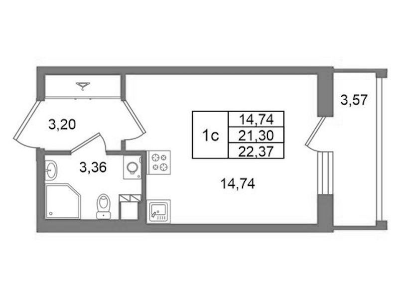 Квартира-студия на 3-ем этаже 21,3 кв.м