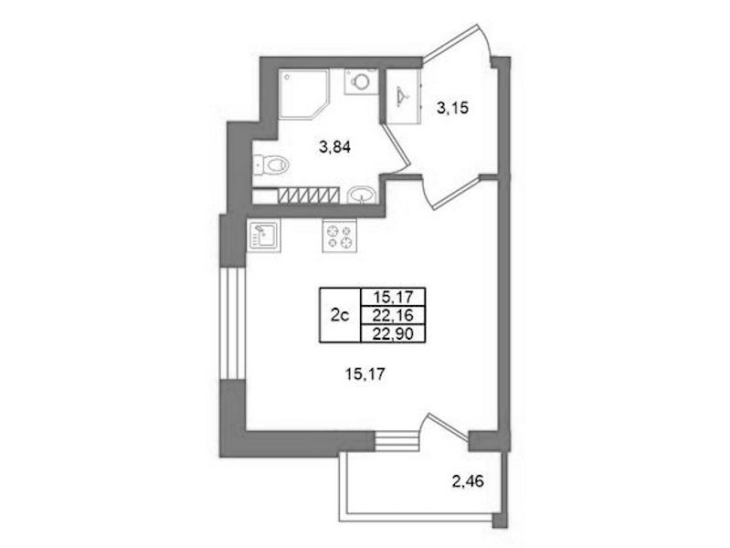 • Площадь22,16 м2