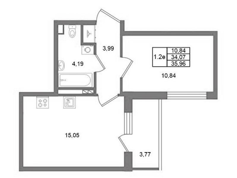 - Площадь34,07 м2