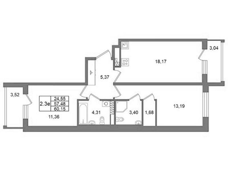 - Площадь57,48 м2