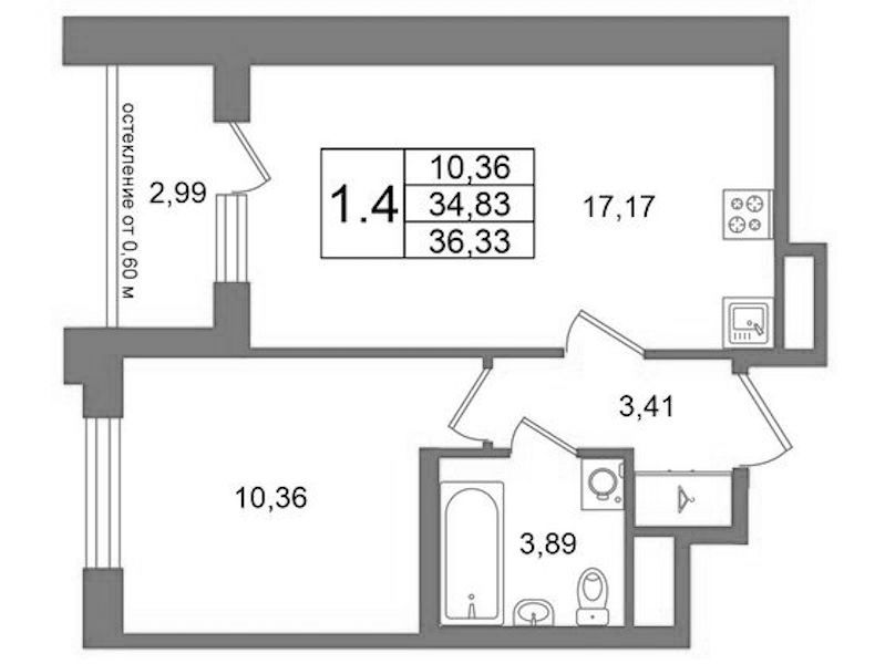 - Площадь34,83 м2