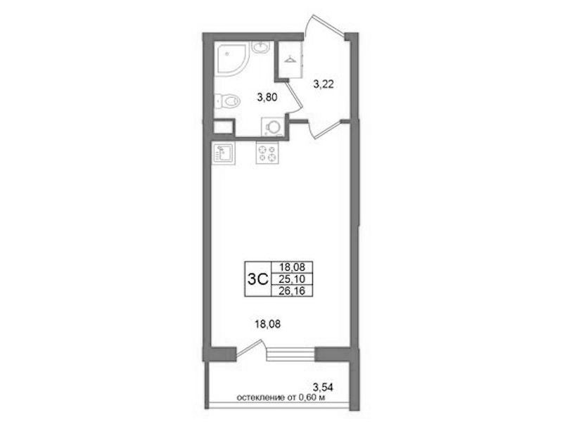 Квартира-студия на 1-ом этаже 25,1 кв.м