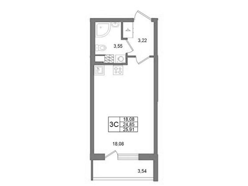Квартира-студия на 4-ом этаже 24,85 кв.м