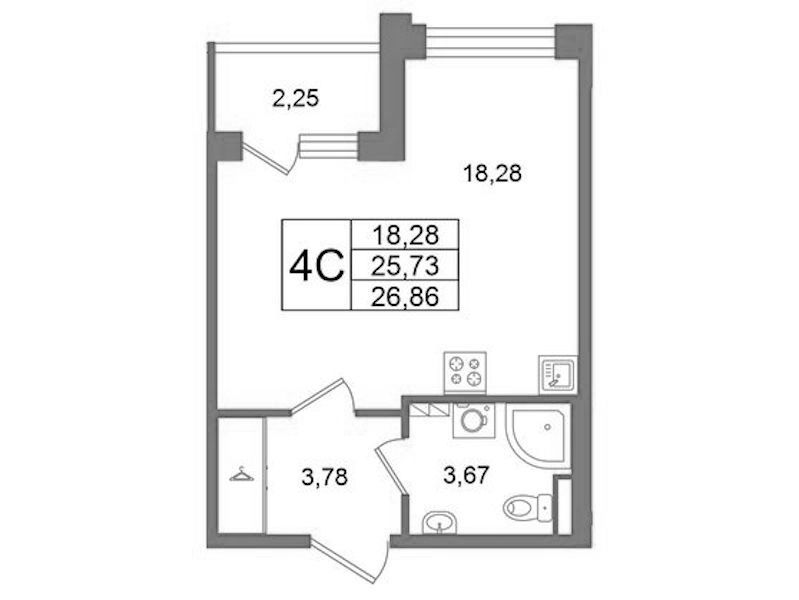 Квартира-студия на 3-ем этаже 25,73 кв.м