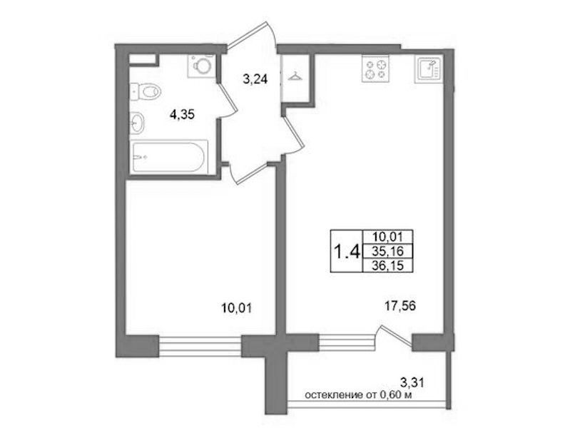 - Площадь35,16 м2