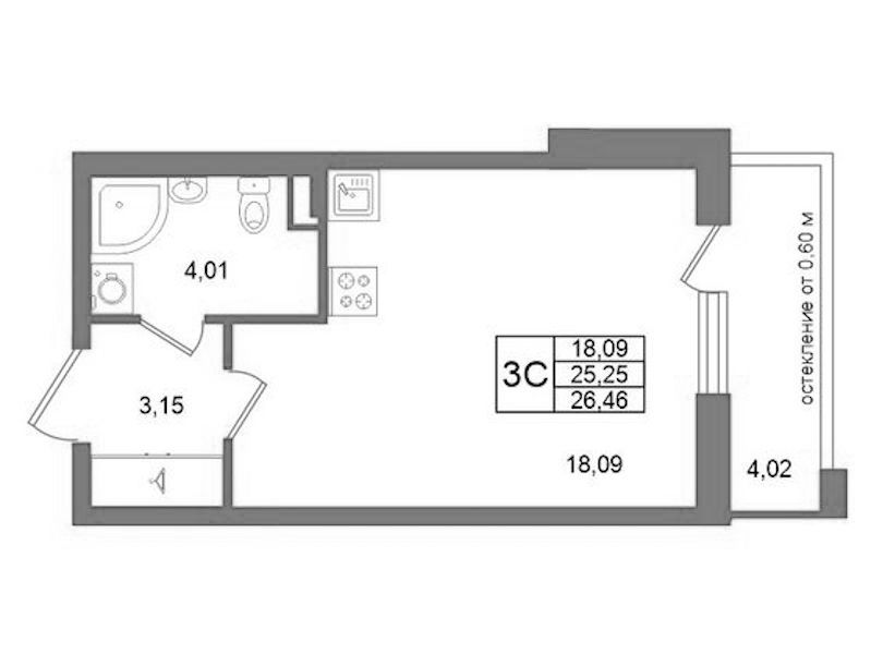 - Площадь25,25 м2