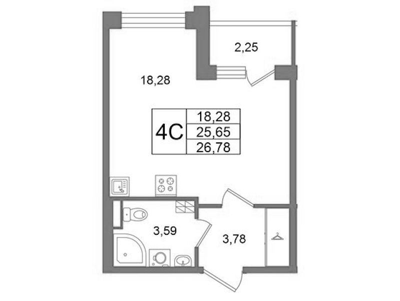 - Площадь25,65 м2