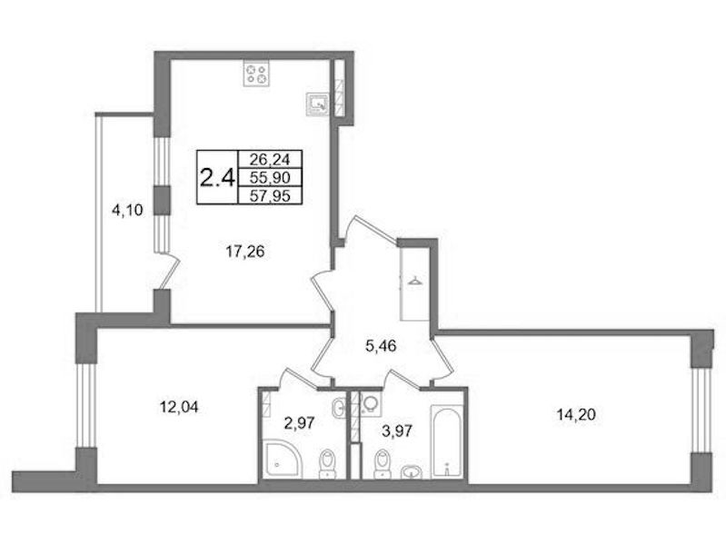 - Площадь55,9 м2