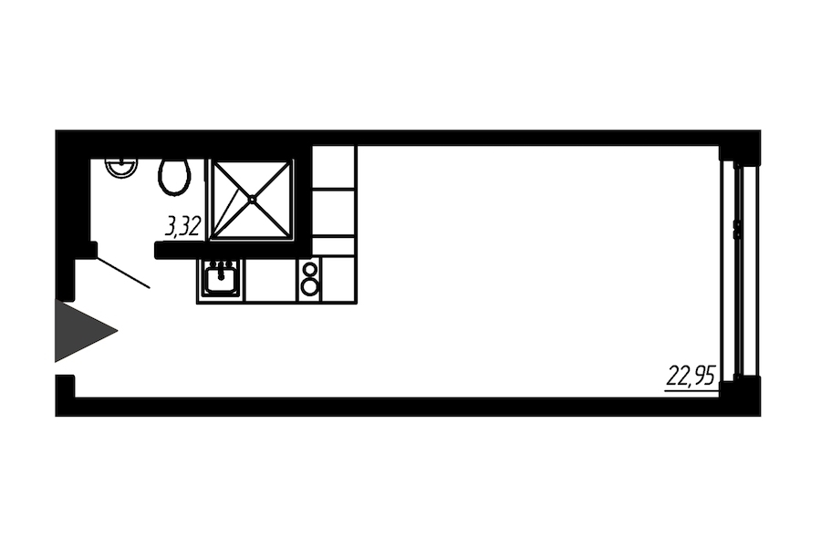 Квартира-студия на 15-ом этаже 26,1 кв.м